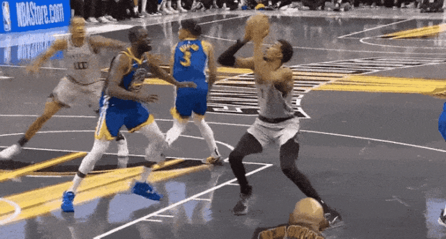 其后,文班在与波杰争抢球权时摔倒